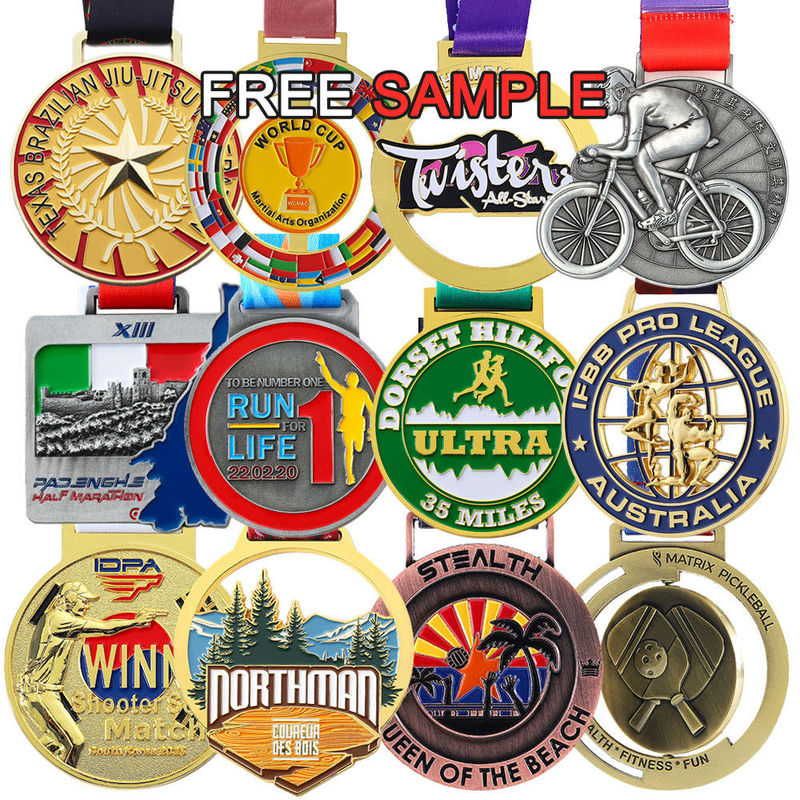 कस्टम पदक जस्ता मिश्र धातु खेल पदक 3 डी स्वर्ण पदक पुरस्कार रस्सी के साथ धातु पदक